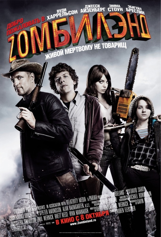 «Добро пожаловать в Zомбилэнд» - комедийный фильм ужасов, посвященный теме оживших мертвецов. США столкнулись с серьезной опасностью – нашествием зомби, которые в один миг опустошили почти всю страну. Большая часть населения погибла, или превратилась в ходячих мертвецов, пожирающих на своем пути людей, оставшихся в живых. Не многим удалось спастись во время зомбиапокалипсиса, а те, кто все же сохранил свою жизнь, должны объединиться ради спасения.